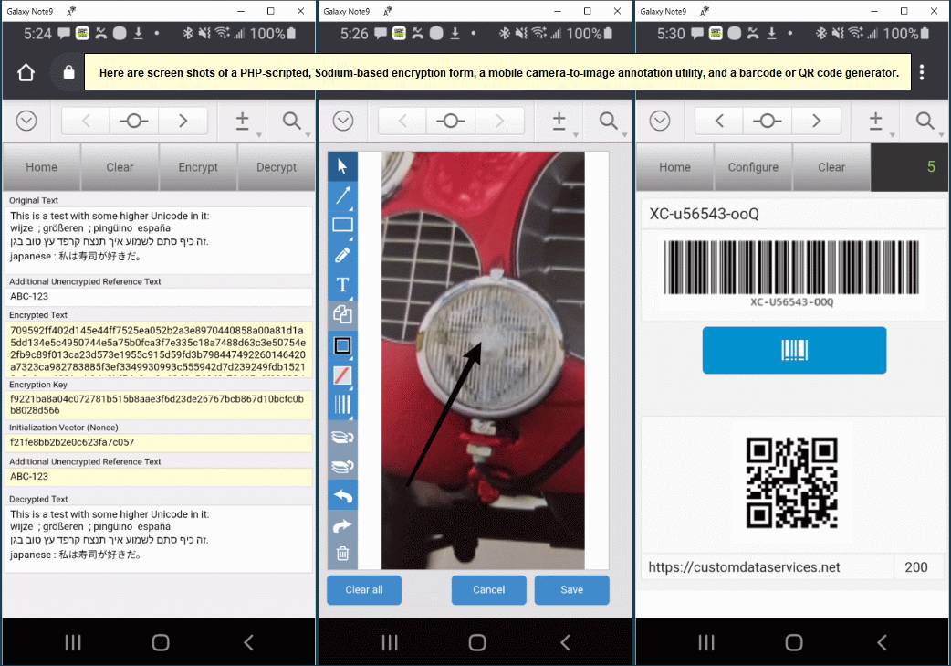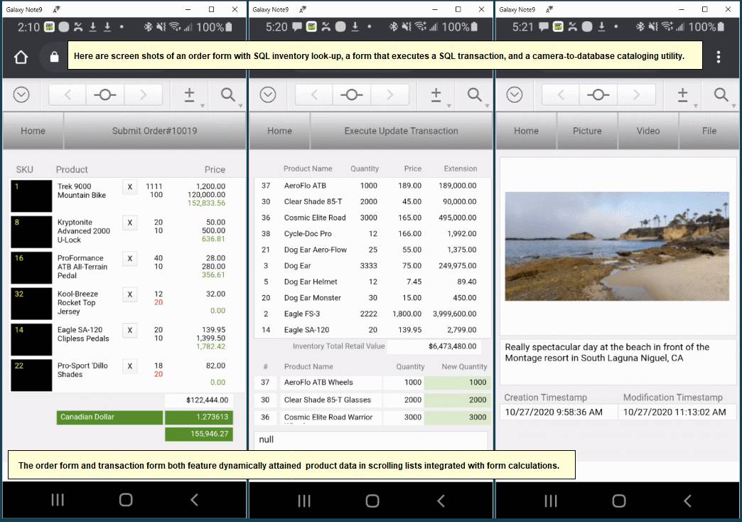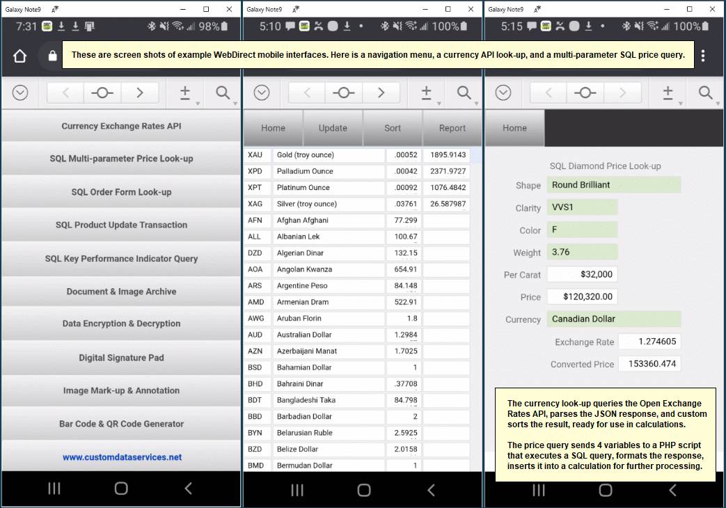 These WebDirect mobile form screenshots demonstrate 10 different functions and can be extended in hundreds of different ways.